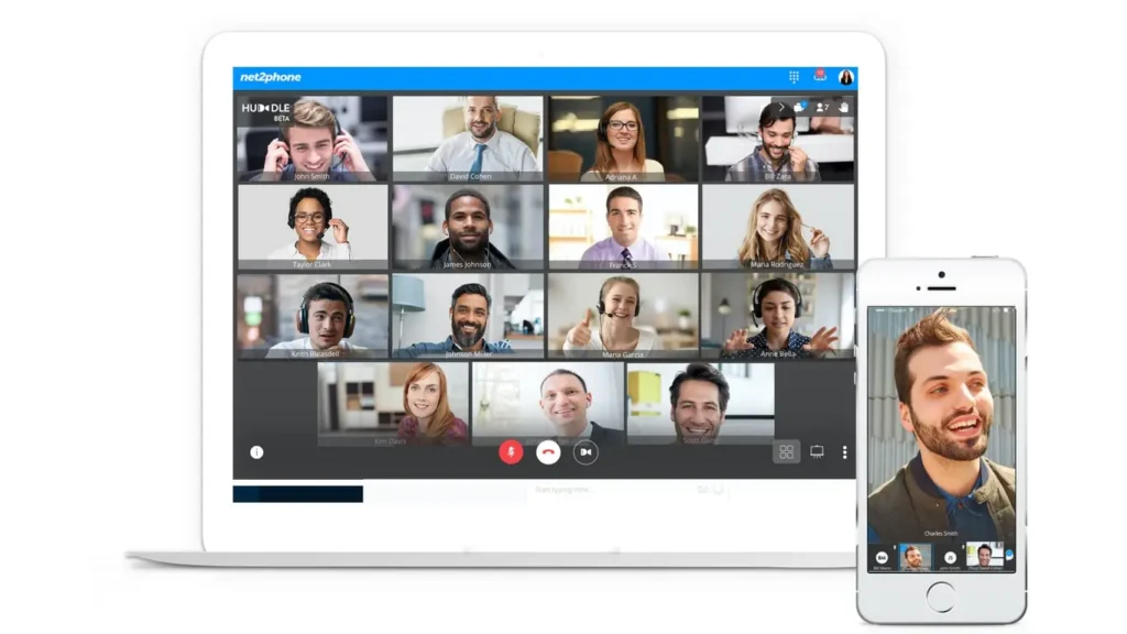 Seja mais produtivo com equipes e clientes usando nossa ferramenta de videoconferência integrada, o net2phone Huddle. Use a gravação de vídeo, compartilhamento de tela, salas de descanso e diversos outros recursos que aumentam a produtividade, sem assinaturas adicionais.